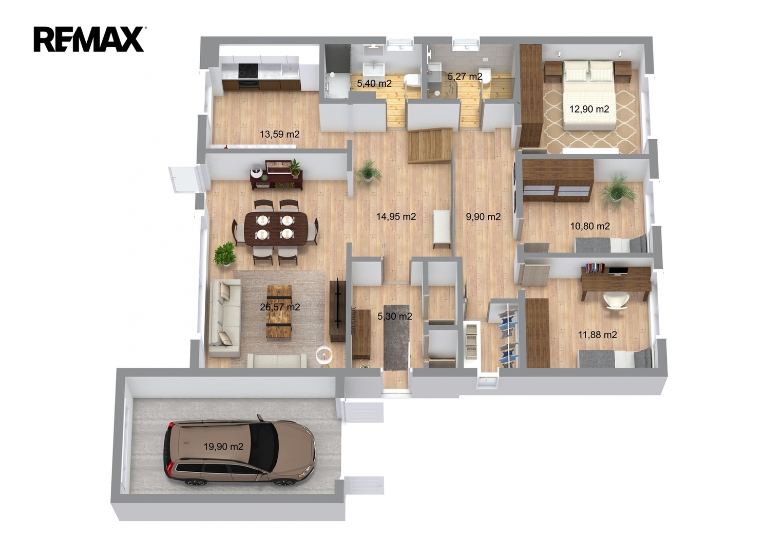 Tento výjimečný cihlový dům, situovaný na samostatném, kompletně oploceném, pozemku o rozloze 802 m², nabízí dokonalou kombinaci pohodlí, elegance a stylu. Dům s jednopodlažní konstrukcí poskytuje prostorné a vzdušné prostředí se zastavěnou plochou 178 m² a více než pěti pokoji a třemi koupelnami, které jsou ideální pro komerční účely ke krátkodobému či dlouhodobému ubytování.