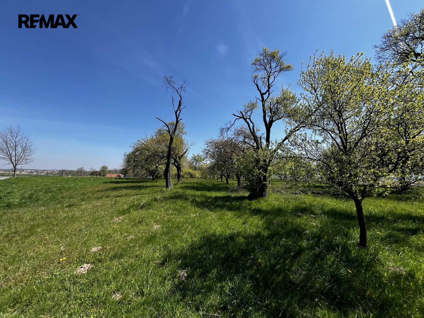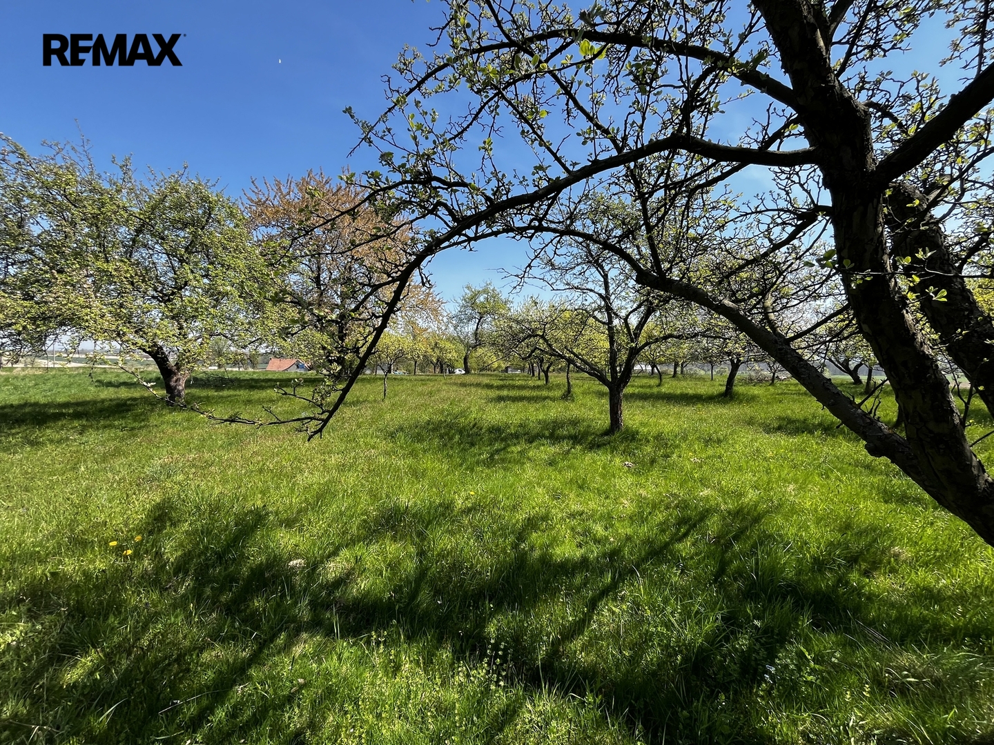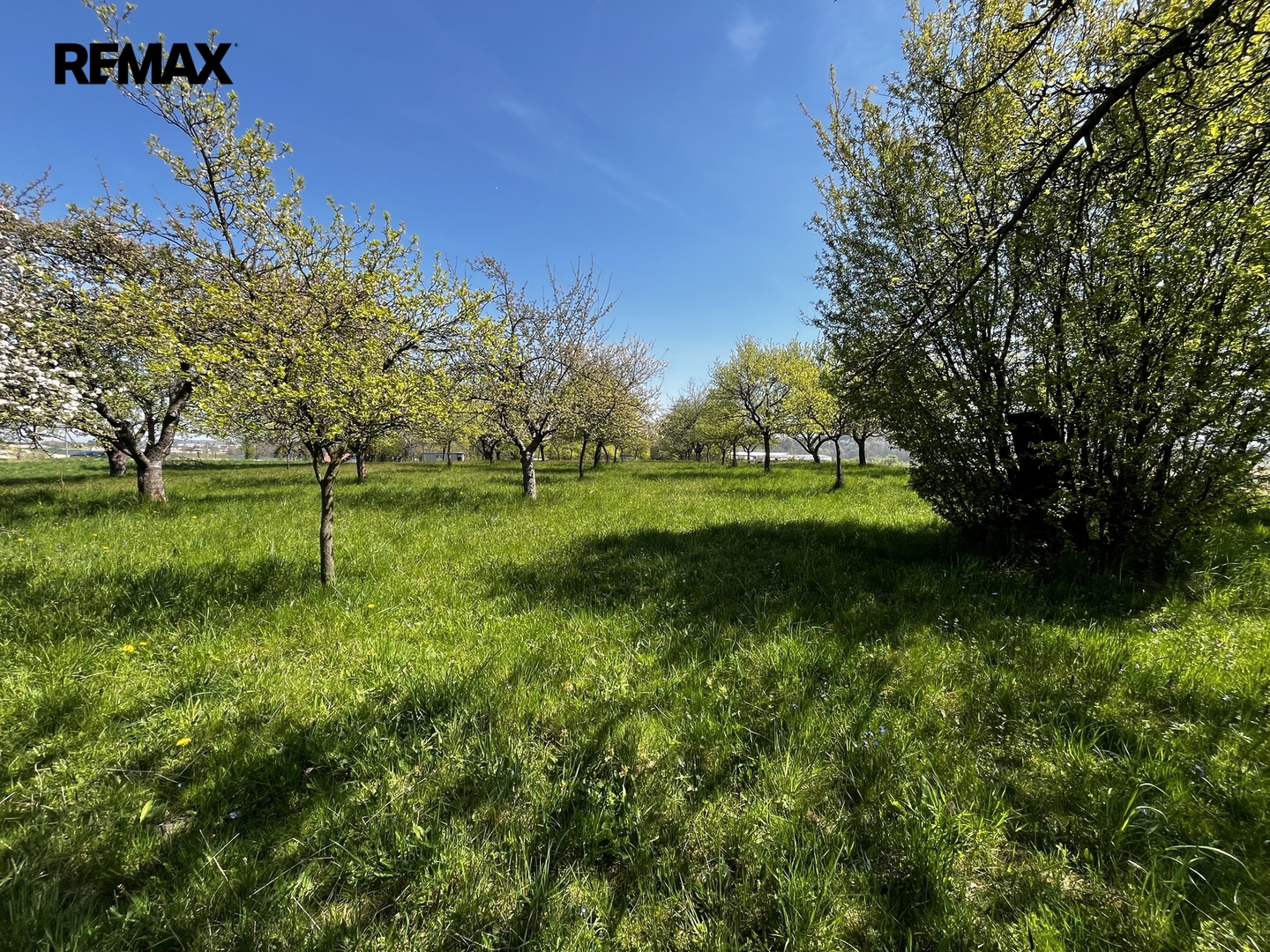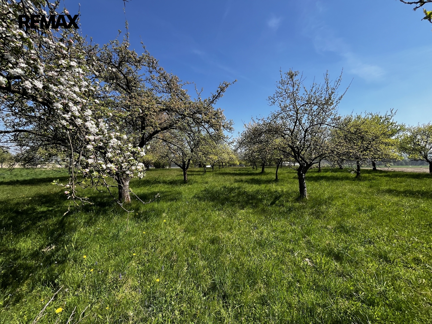 Ovocný sad (70 stromů) a orná půda s podsklepenou garáží