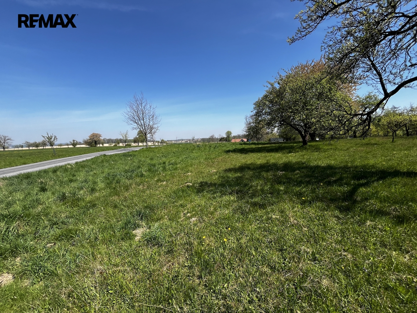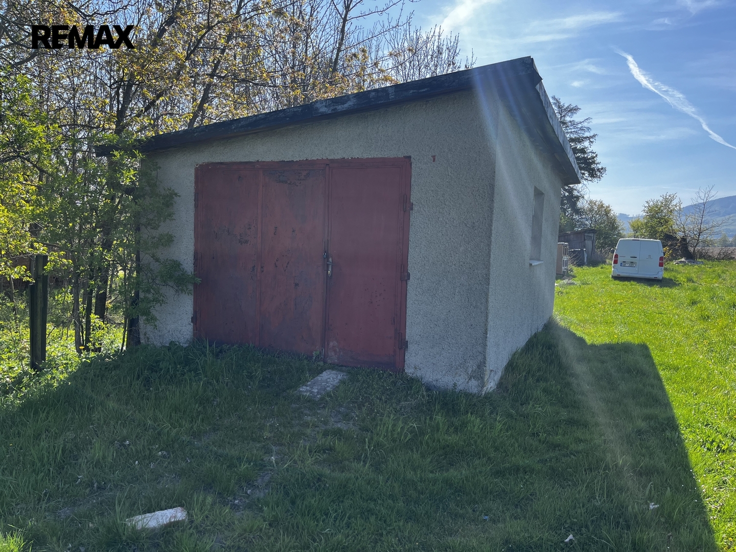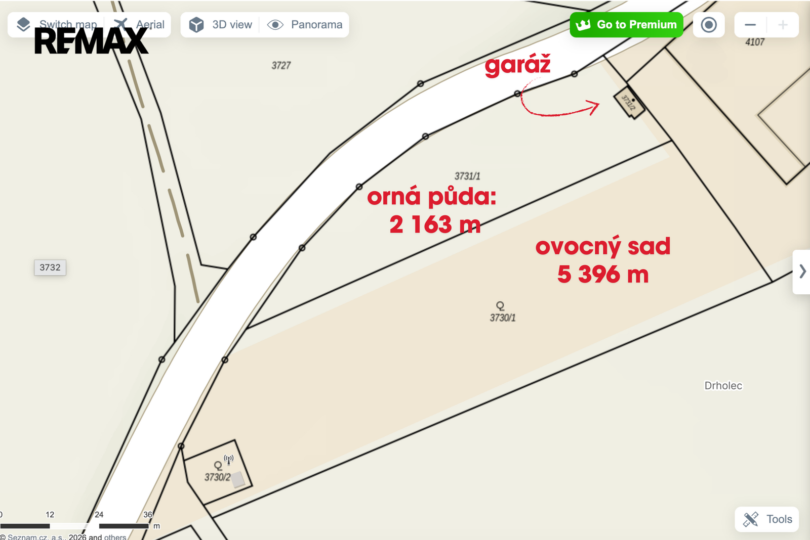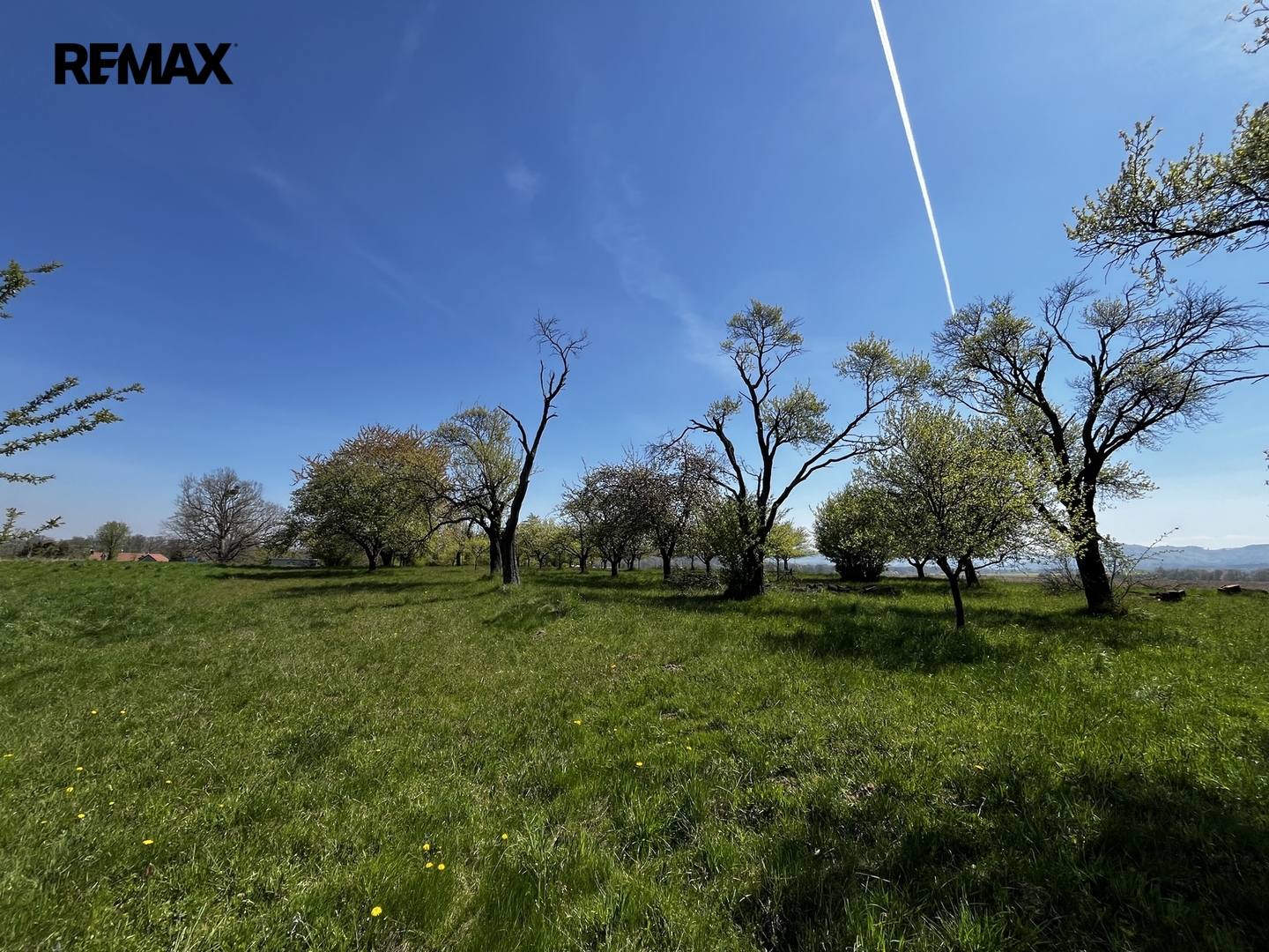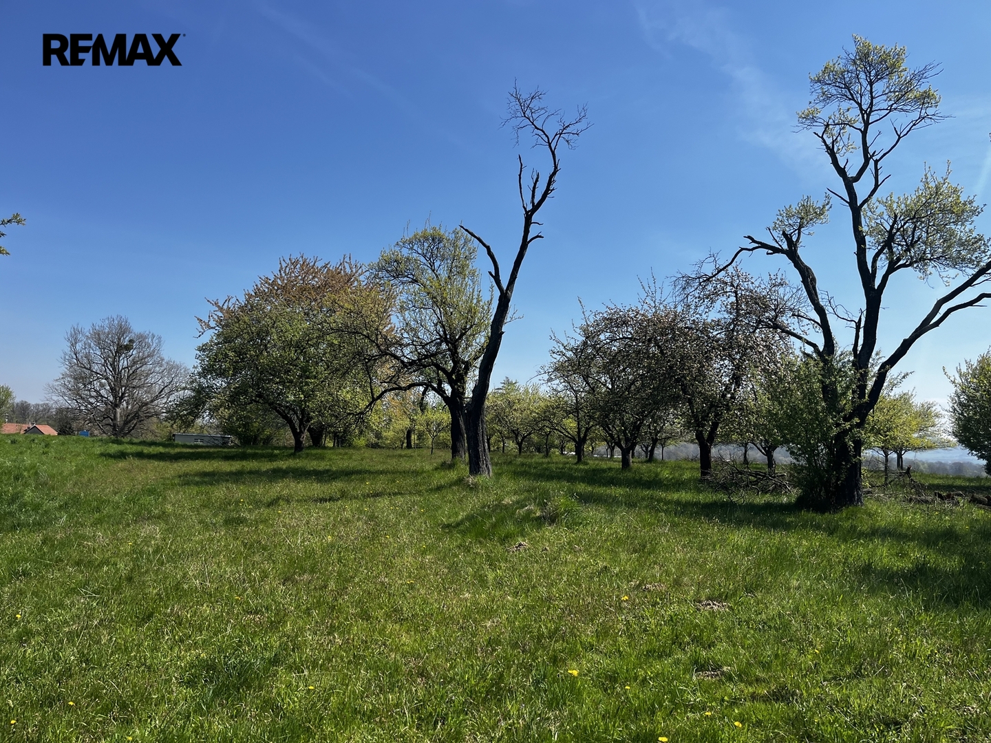 Ovocný sad (70 stromů) a orná půda s podsklepenou garáží