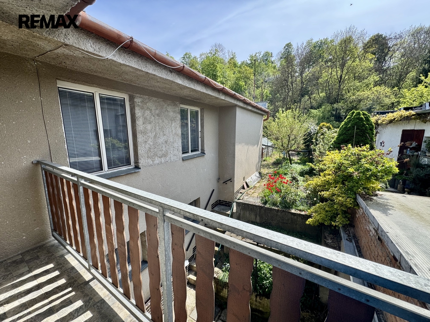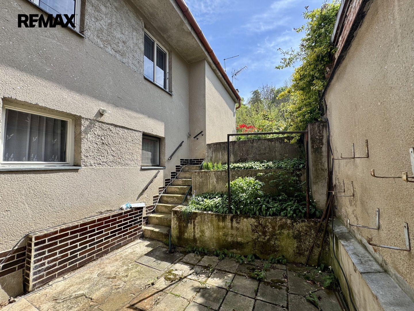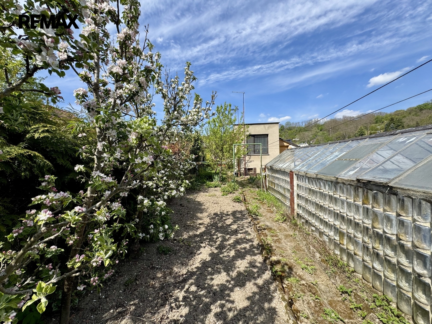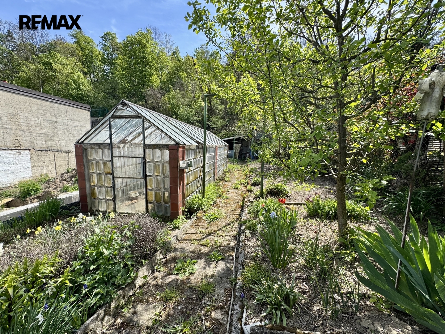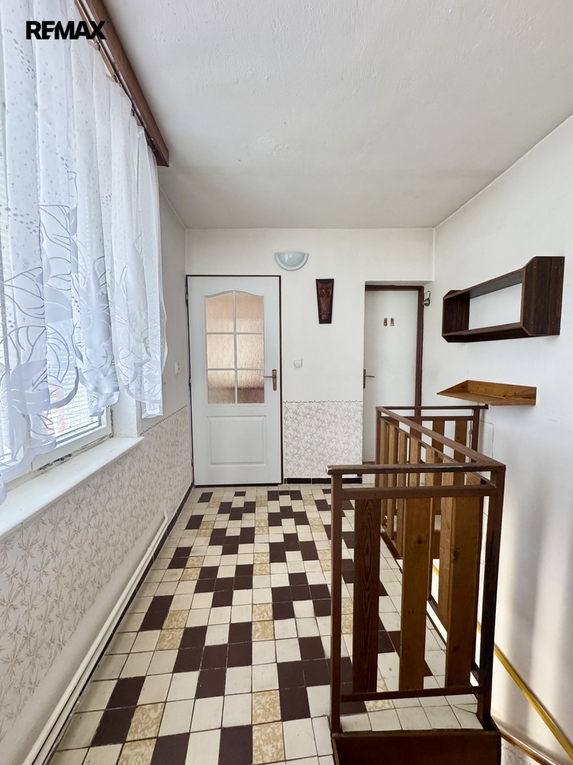 Za domem je dvůr a dlouhá zahrada se skleníkem, ovocnými stromy (broskev, švestka, jabloně) a kůlnou na nářadí, která poskytuje klidné zázemí oddělené od ulice. Nabízí dostatek prostoru pro relaxaci, zahradničení nebo vybudování venkovního posezení. Parkování ve vlastní garáži s el. vraty, nebo před domem. Cca 50 metrů od domu je autobusová zastávka.
