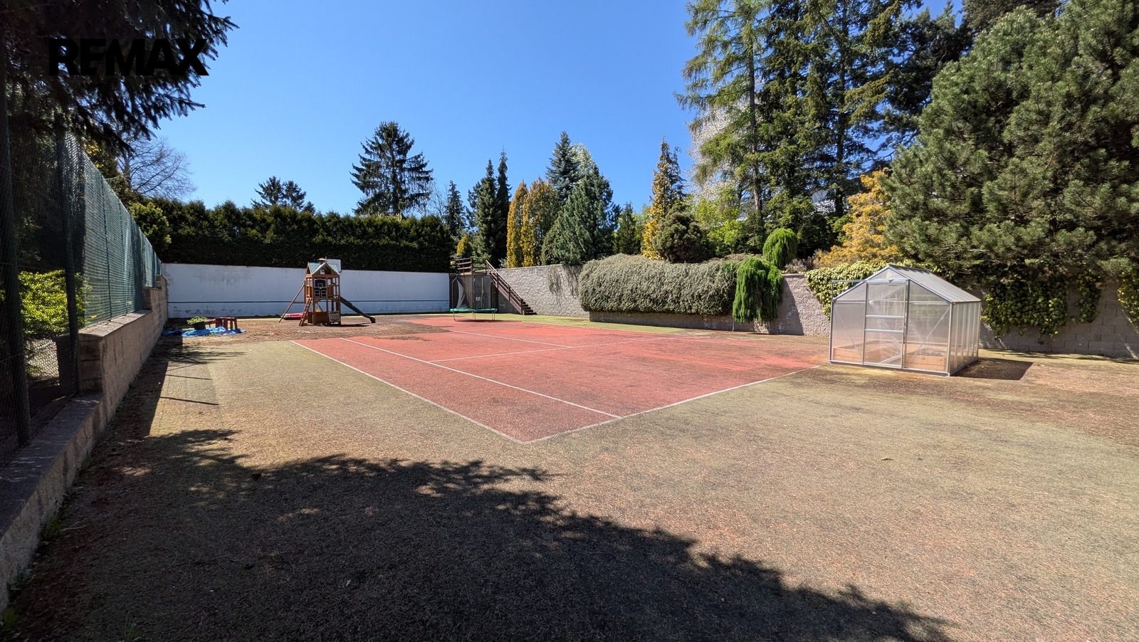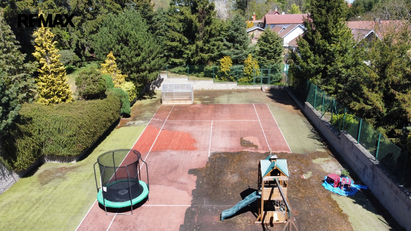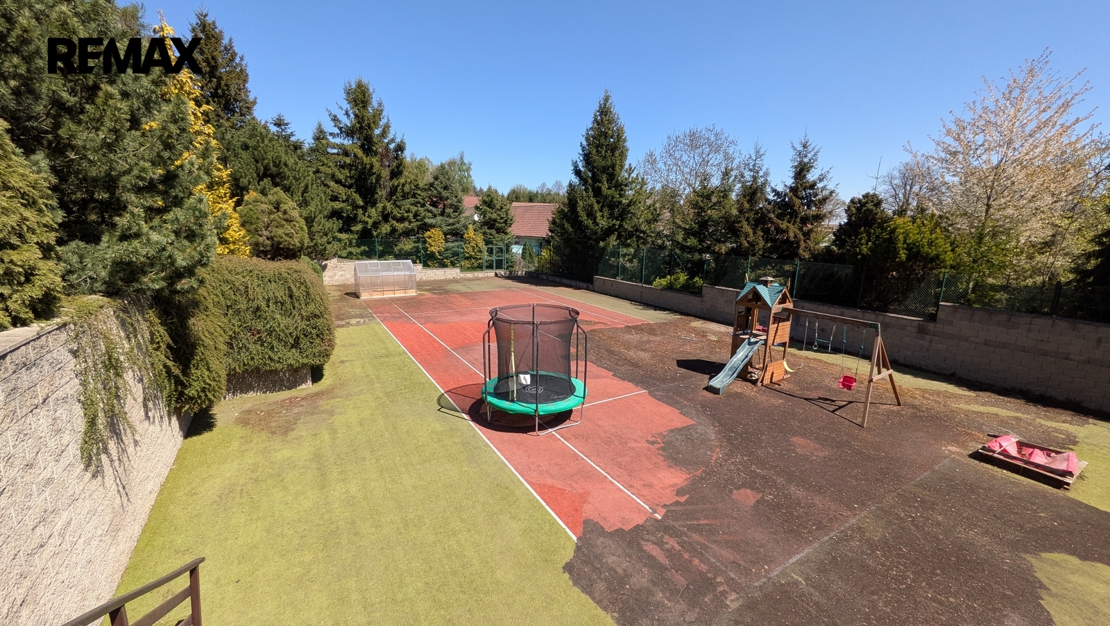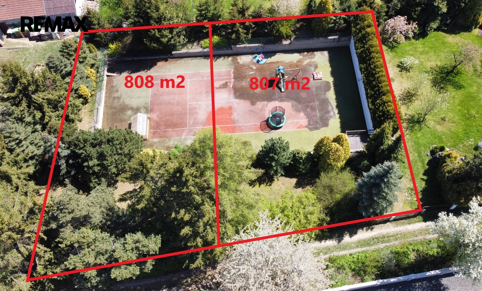 Pozemky jsou aktuálně využívány jako pečlivě udržovaná zahrada se vzrostlou zelení a tenisovým kurtem, který nabízí okamžité využití pro sport, rekreaci nebo soukromé sportovní zázemí. Nabídka tak může oslovit i zájemce, kteří nehledají primárně stavební pozemek, ale prostor pro zachování či další rozvoj sportoviště nebo soukromého rekreačního areálu.