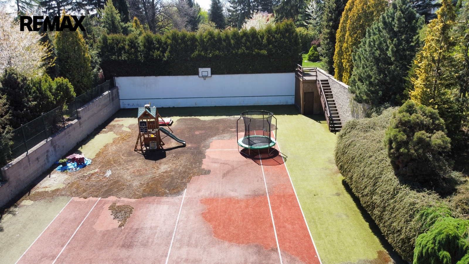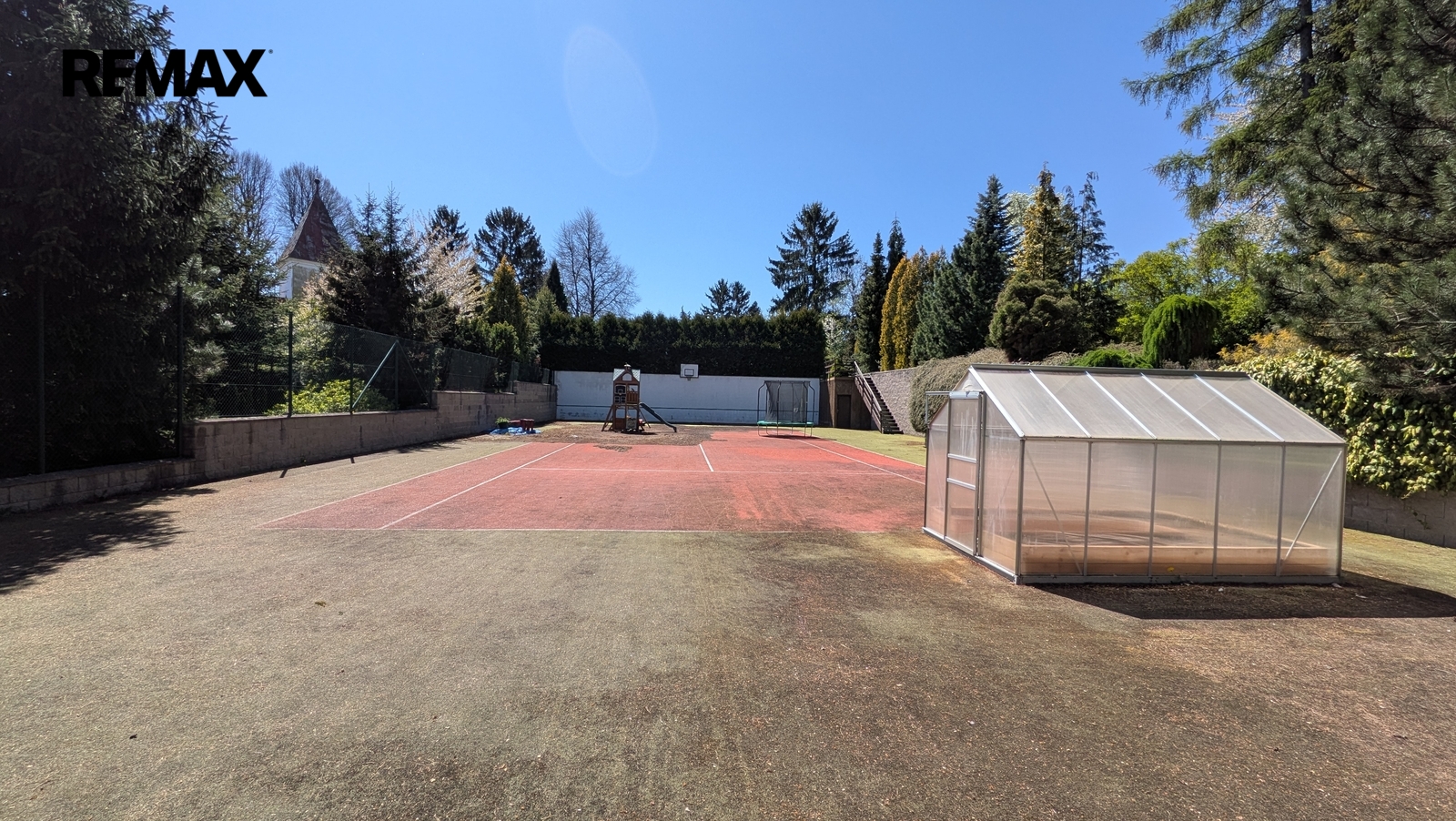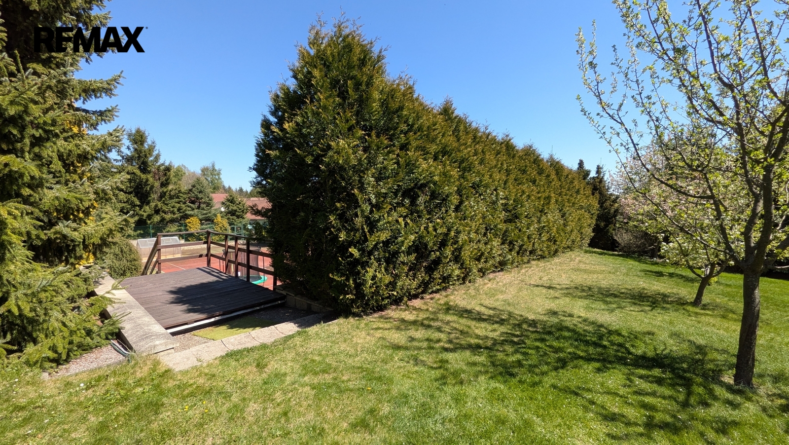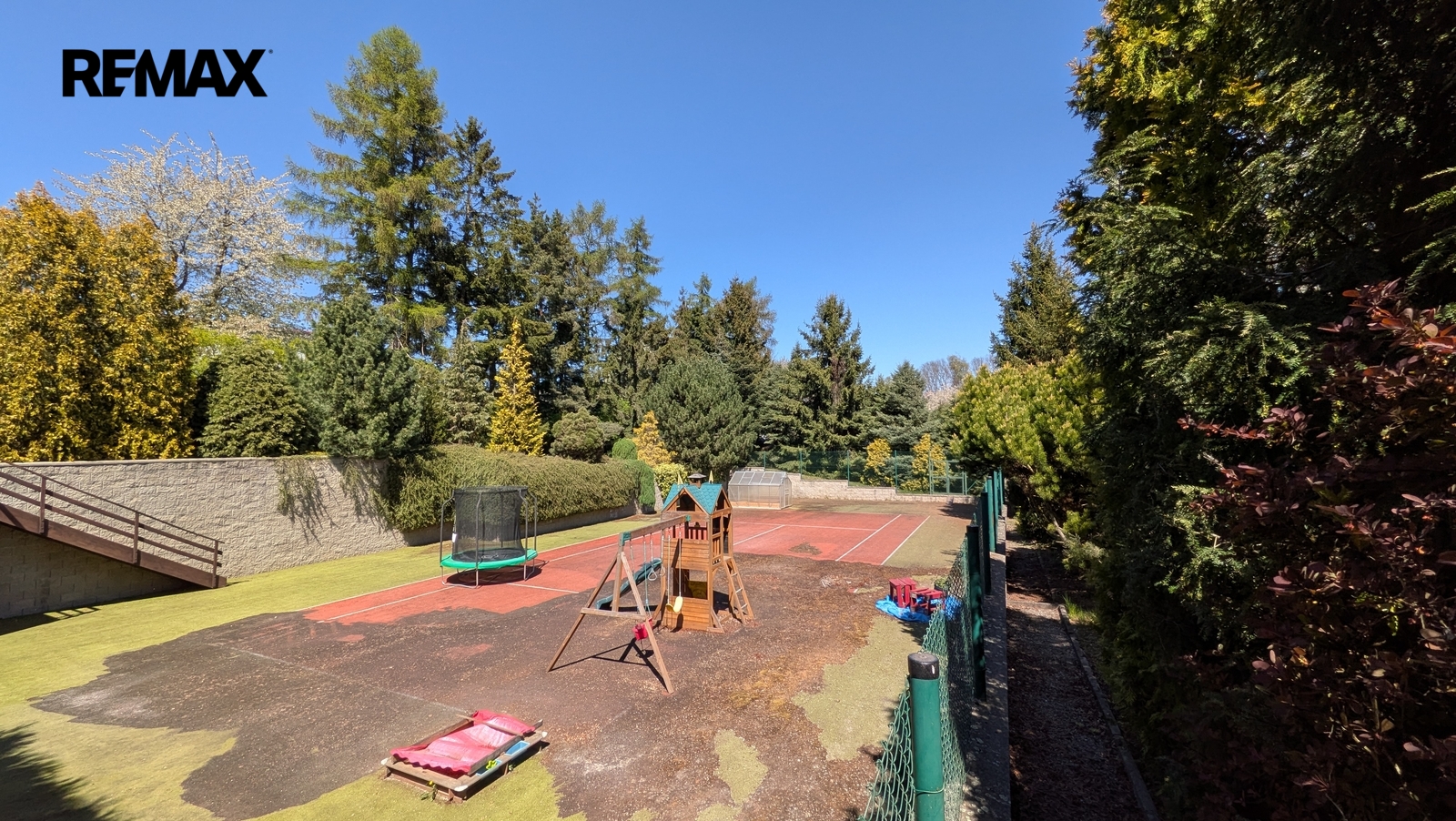 Pozemky jsou aktuálně využívány jako pečlivě udržovaná zahrada se vzrostlou zelení a tenisovým kurtem, který nabízí okamžité využití pro sport, rekreaci nebo soukromé sportovní zázemí. Nabídka tak může oslovit i zájemce, kteří nehledají primárně stavební pozemek, ale prostor pro zachování či další rozvoj sportoviště nebo soukromého rekreačního areálu.