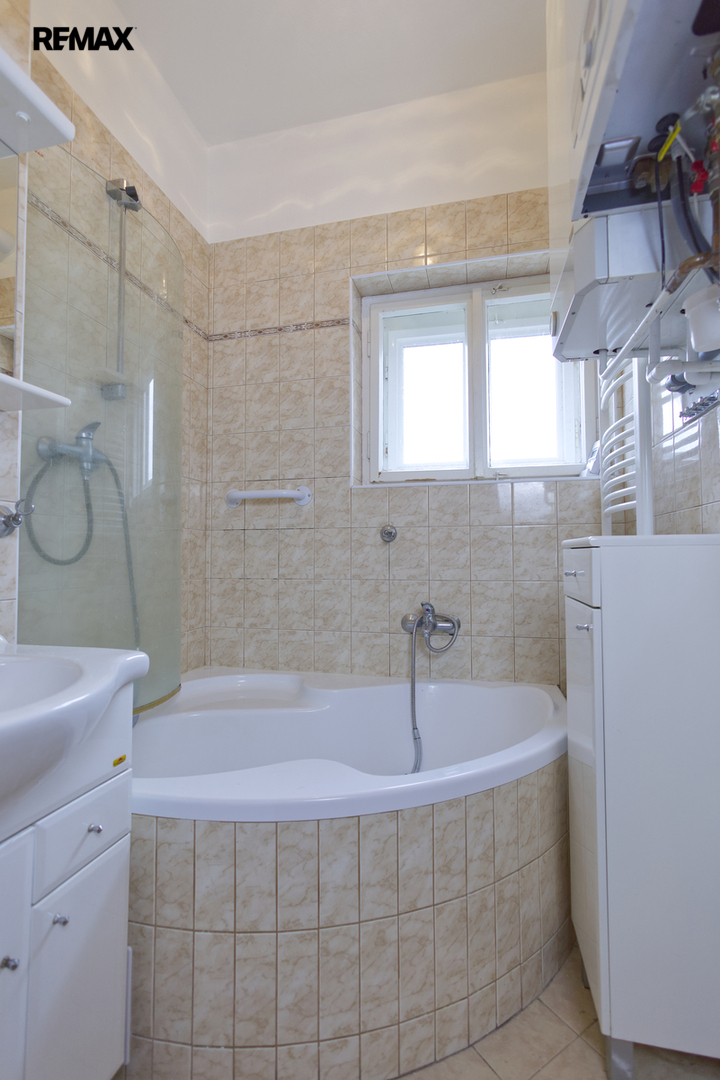 Byt prošel částečnými úpravami a nabízí velmi příjemné zázemí pro bydlení. Koupelna je po rekonstrukci, v bytě byly provedeny nové elektrické rozvody, v obytných místnostech jsou parkety a okna jsou původní, doplněná o trojskla. Samozřejmostí je napojení na elektřinu, plyn i vodu. Vytápění a ohřev vody zajišťuje vlastní kondenzační kotel Baxi Luna, což přináší komfort samostatného provozu i dobrou kontrolu nad náklady.