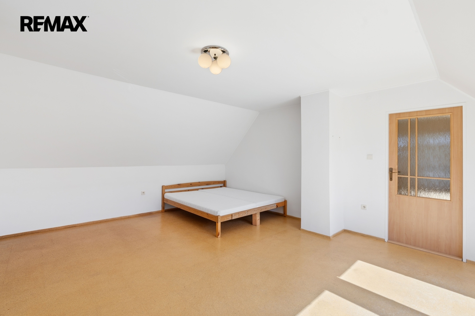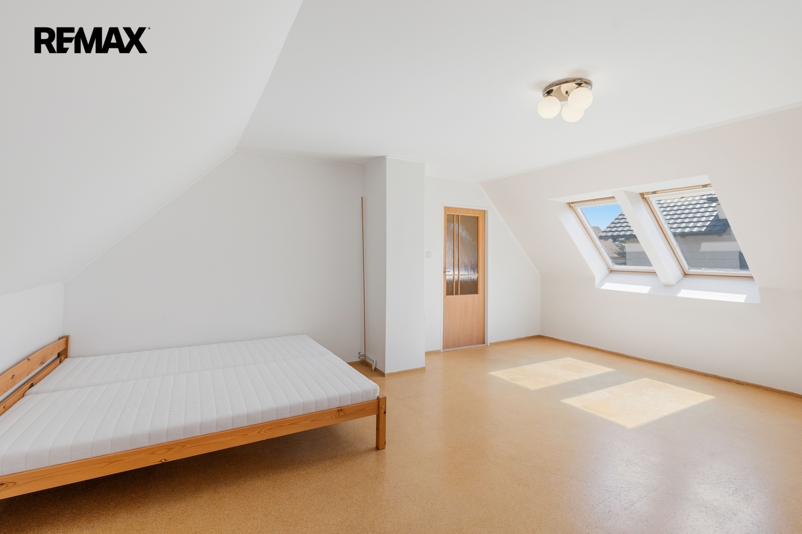 NP (58,08 m² + 4,4 m² lodžie): 2x ložnice (25,55 m²; 20,06 m²), koupelna (3,12 m²) a chodba (9,35 m²)